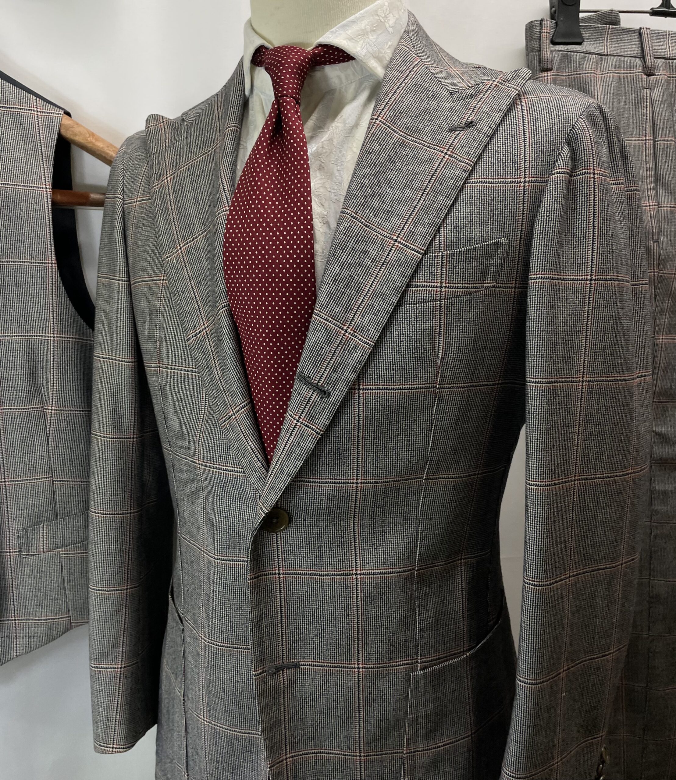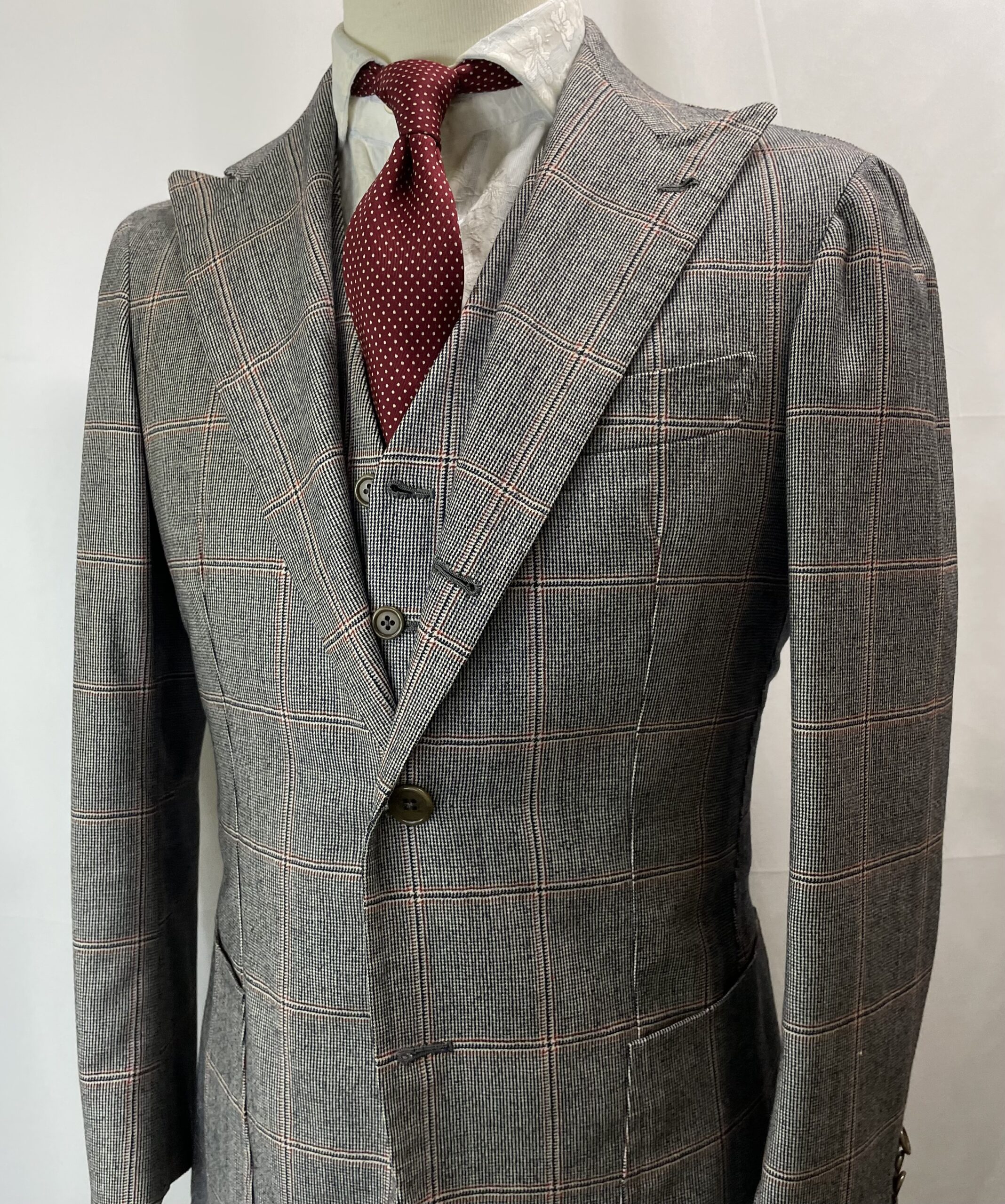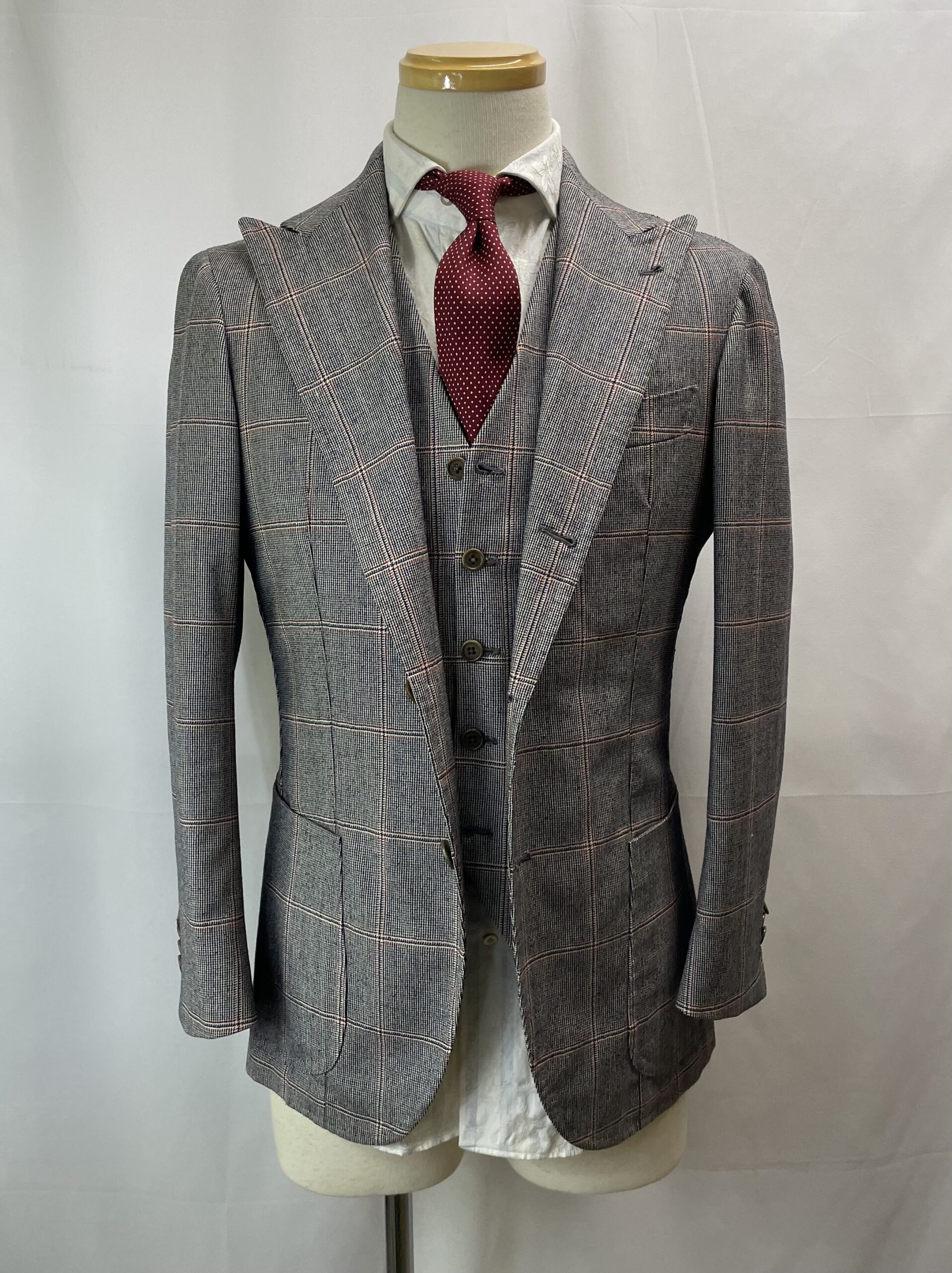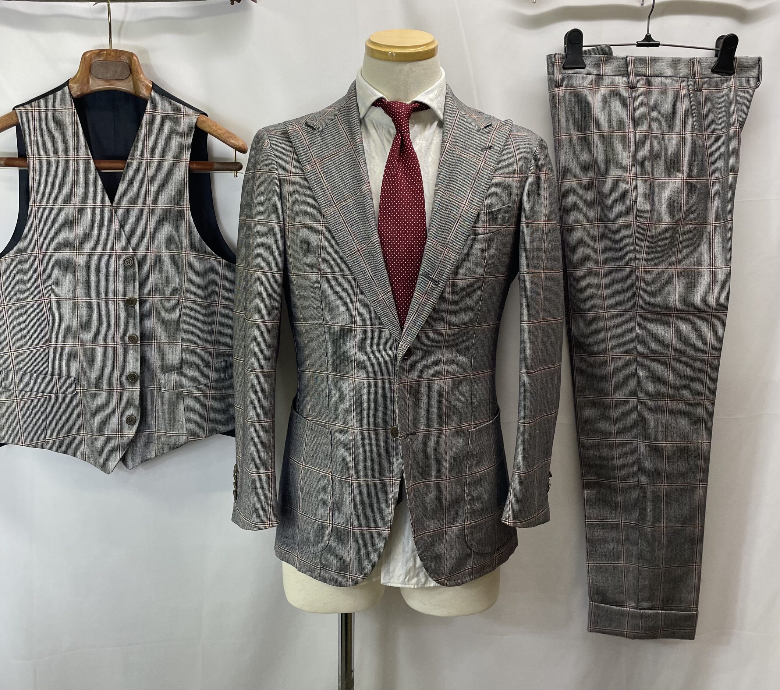 そのナポリ最高峰のサルトリアの手仕事による珠玉の貴重なハンドメイドのジャケット&ベストジレ&トラウザーズのスリーピース・セットアップスーツです。