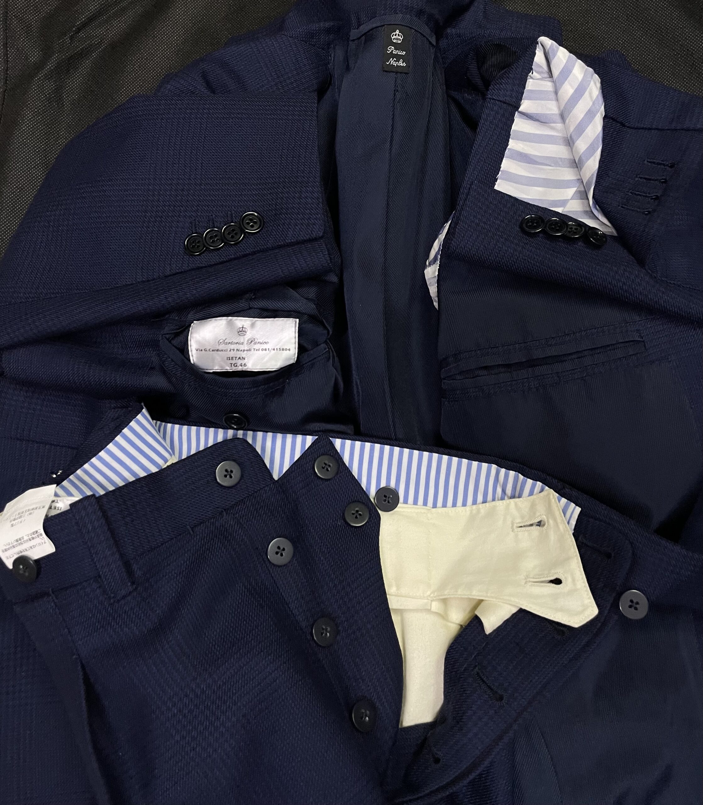イタリアではもちろん世界中で名の通った最高峰サルト「アントニオ パニコ」の超一流ハンドワーク・テーラリング仕立ての着心地と優越感は何物にも代え難く、一度体感したら虜になると思います。
