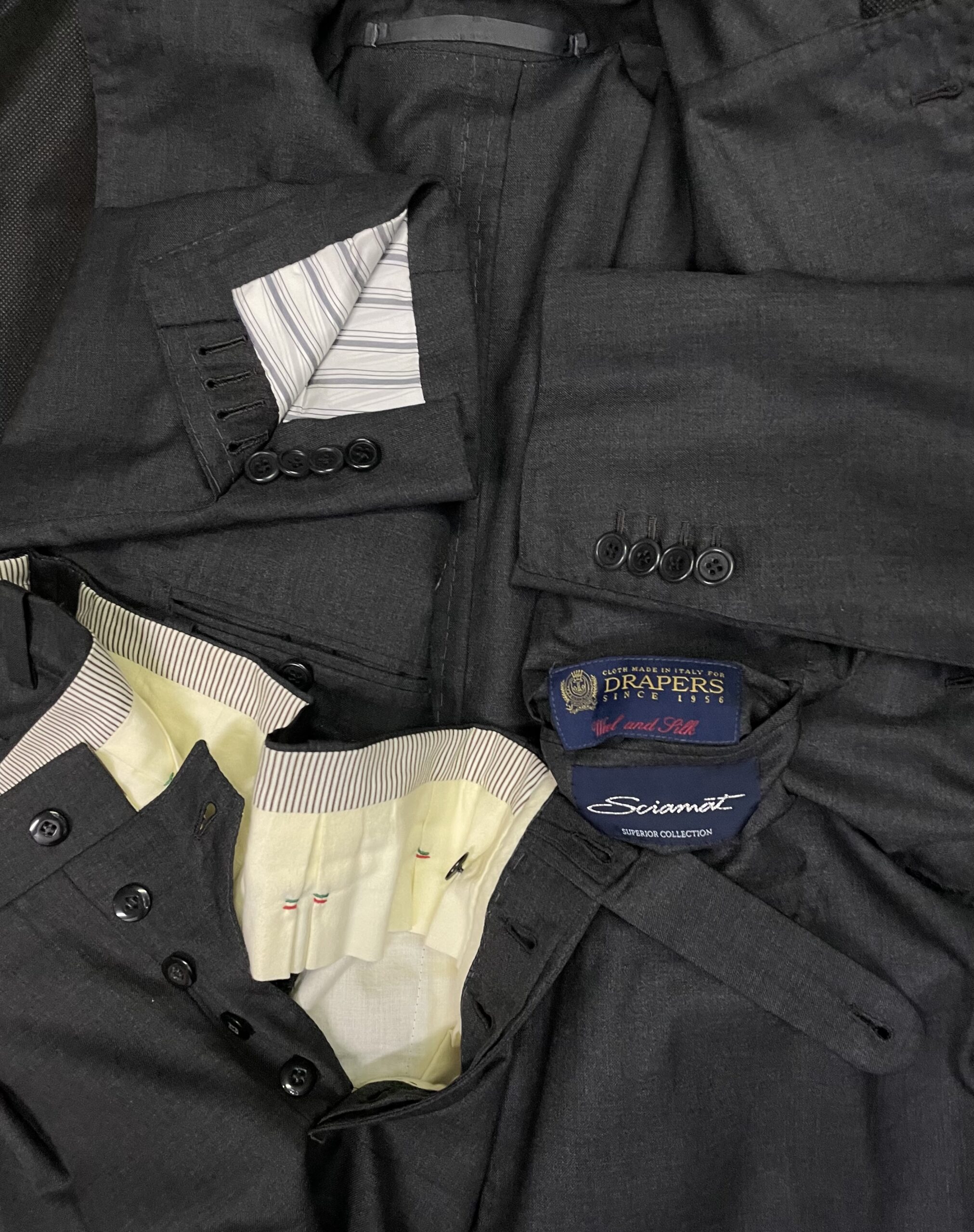 日本ではほとんど流通していない希少な最旬モダンサルトリアーレ【Sciamat(シャマット)】の極めてエレガントな技巧ハンドメイド仕立ての美しい極上テーラードスーツを1点のみ、お探しの方にお安くお譲り致します。