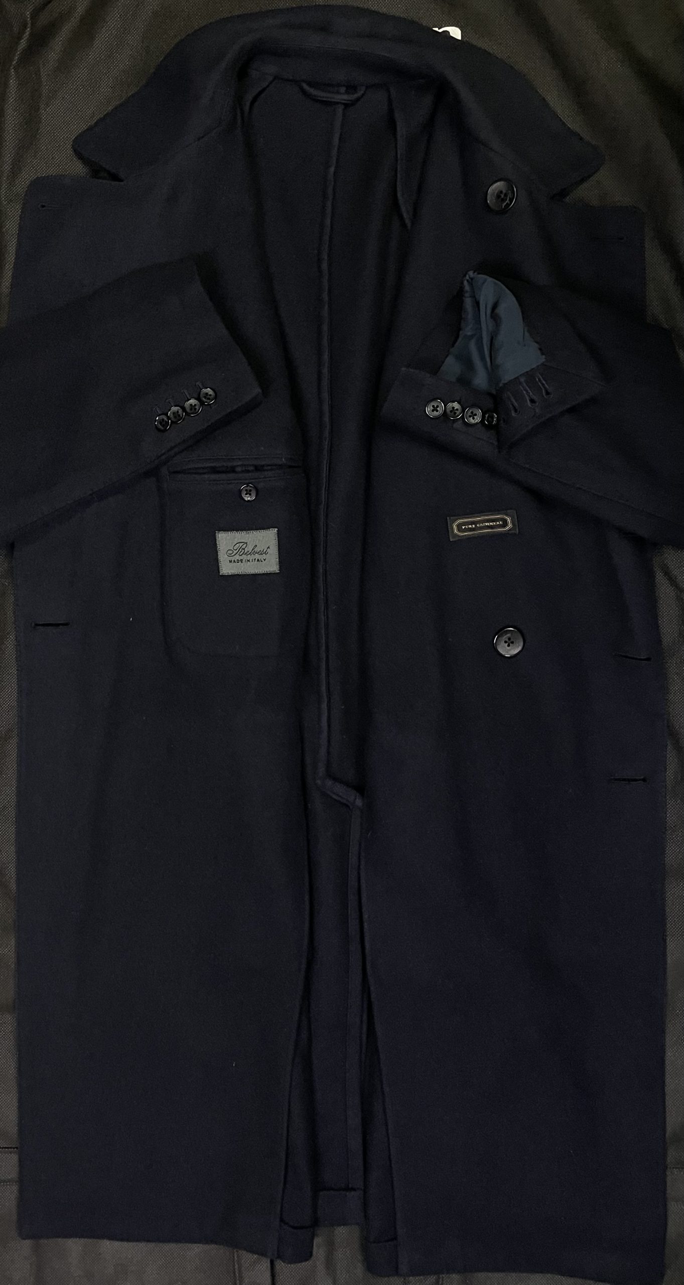 現国内定価50万円位の高級品★正統クラシコイタリアの柔らかい着心地★贅沢カシミヤ100%生地&軽快な芯地無しアンコン仕立て★イタリア製★良品【Belvest ベルベスト】技巧テーラード仕立ての美しい正統派ダブルチェスターコート!
