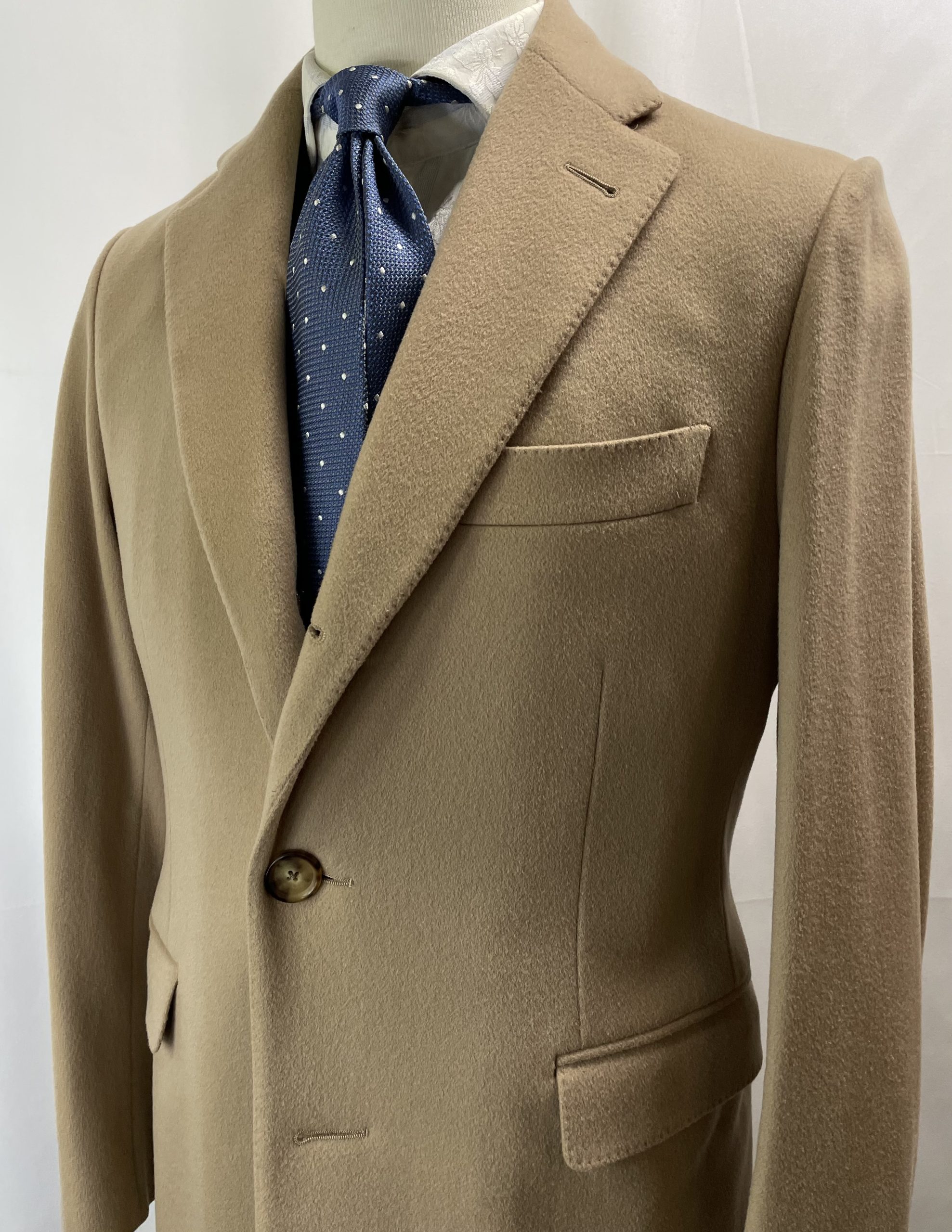 上質な色艶と柔らかく極上の滑り肌触りの厚肉カシミヤ混ウール生地を贅沢採用し、イタリア一流ファクトリーの腕利き職人により仕立てられた、秀逸なテーラードコートです。