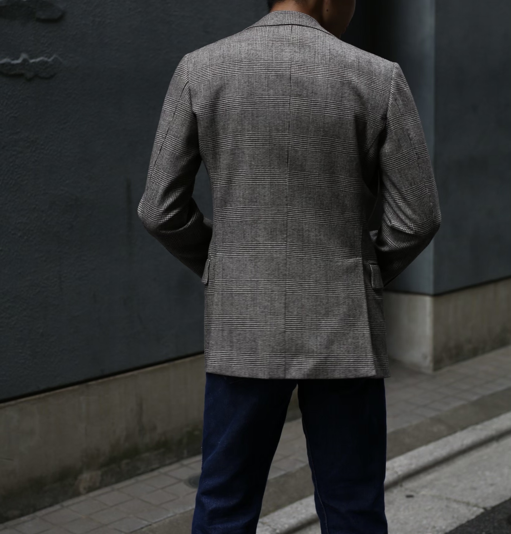 見るからに品格あり洒脱な濃淡グレージュ系色グレンチェック格子柄が、エレガントなフォルムと相まって文化的でモダンな洗練された印象を与えます。